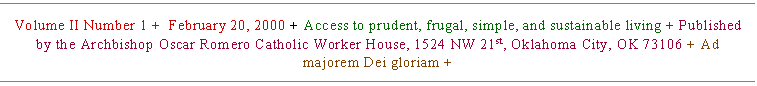 ++++++ For those who are ready to move this world where 3 billion people live in abject poverty, in which the culture of death reigns fierce, and deadly, where the strong prey upon the weak and grow rich by unjust means, this little corner of cyber space offers pathways and journeys, fertile ground for all who would help grow a civilization of life and love. If we don't like the structures of violence, greed, lust, death, exploitation, injustice, and oppression, what do we need to do differently? Can we spend our way out with an orgy of materialistic consumerism? Shoot our way out of the box? Kill even more innocent babies?