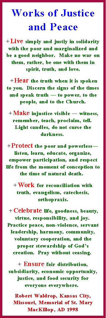 4,000 copies of Better Times, my cookbook and almanac of useful information for poor people, were delivered in December and most have been distributed free to the poor in food baskets given out by Catholic Charities and food pantries in Catholic parishes in the Kansas City area.. I have some left, and will be happy to send anybody a free copy who sends me a manila envelope (at least 9" x 11" size) with $1.47 in US postage on it ($1.63 to Canada, $5.00 airmail to Europe and most other overseas locations, $1.63 for surface mail to these places). Thanks be to God, and to all who sent donations to bring this project to press.